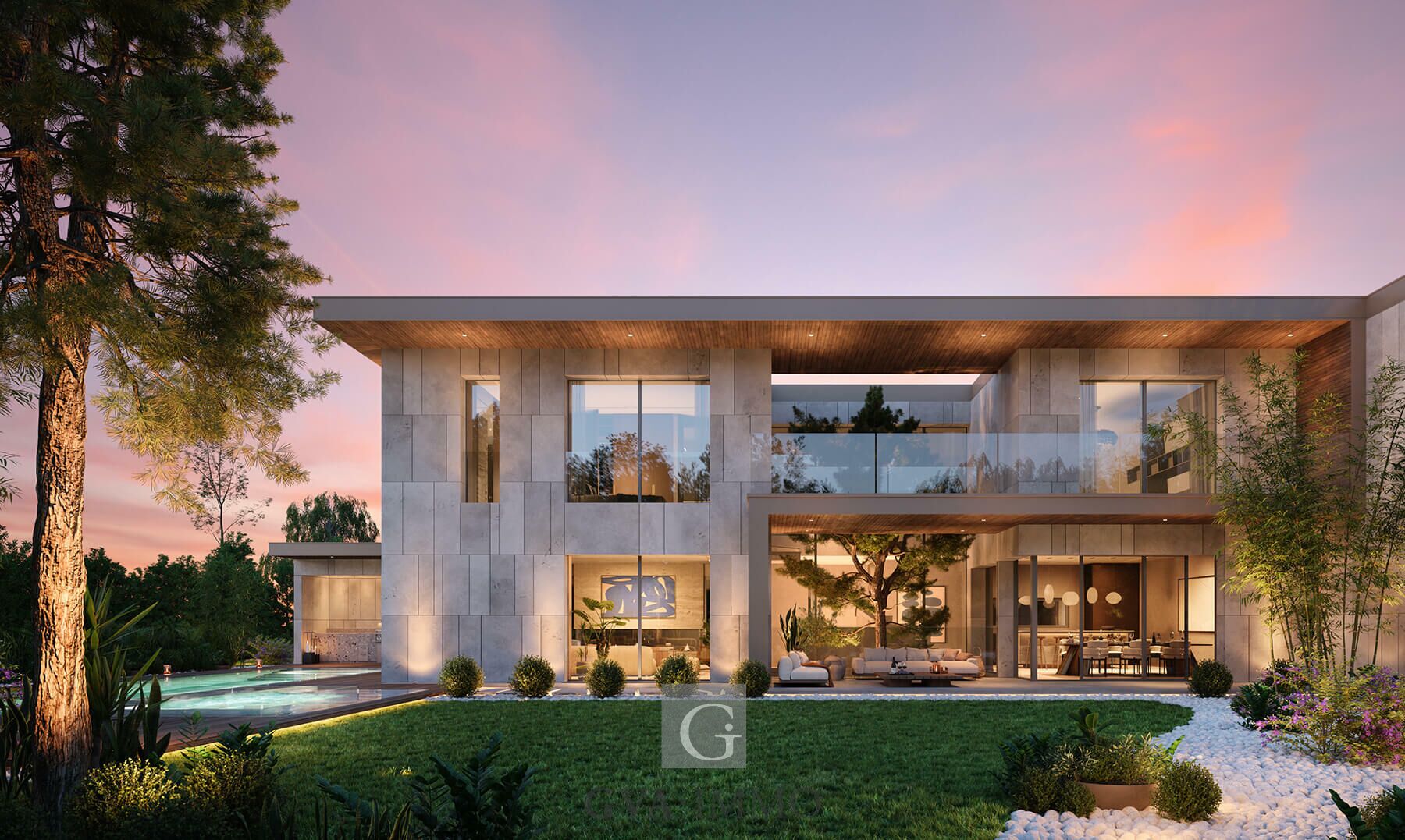 L'architecture du projet est résolument contemporaine. Tel un lieu hors du temps, ses lignes rectangulaires et élancées s'affirment avec grâce et créent des espaces de vie exceptionnels.